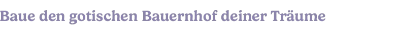 Gestalte dein gemütliches gotisches Zuhause und verwandle eine vergessene Farm in den idealen Rückzugsort. Erhalte neue Werkzeuge und entwickle dein Grundstück, um noch mehr verzauberte Feldfrüchte anzubauen und magisches Vieh großzuziehen.