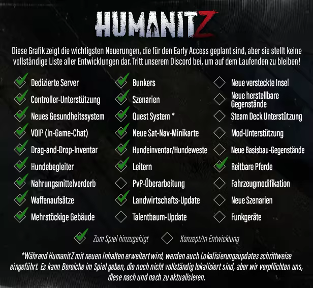 Die Zivilisation, wie wir sie kennen, wurde durch eine Zombie-Epidemie ausgelöscht. Horden von Zeeks haben sich in der Nahrungskette hochgenagt und zum Spitzenprädator der Welt erkoren. Wenige Jahre später sind normale Menschen eine gefährdete Spezies, die in dieser neuen, feindseligen Welt ums Überleben kämpfen. Willkommen bei HumanitZ, einem Top-Down-Survival-Spiel in einer offenen Welt, in dem du die Gelegenheit hast, eine Veränderung für die Menschheit zu schaffen, und sie dorthin...
