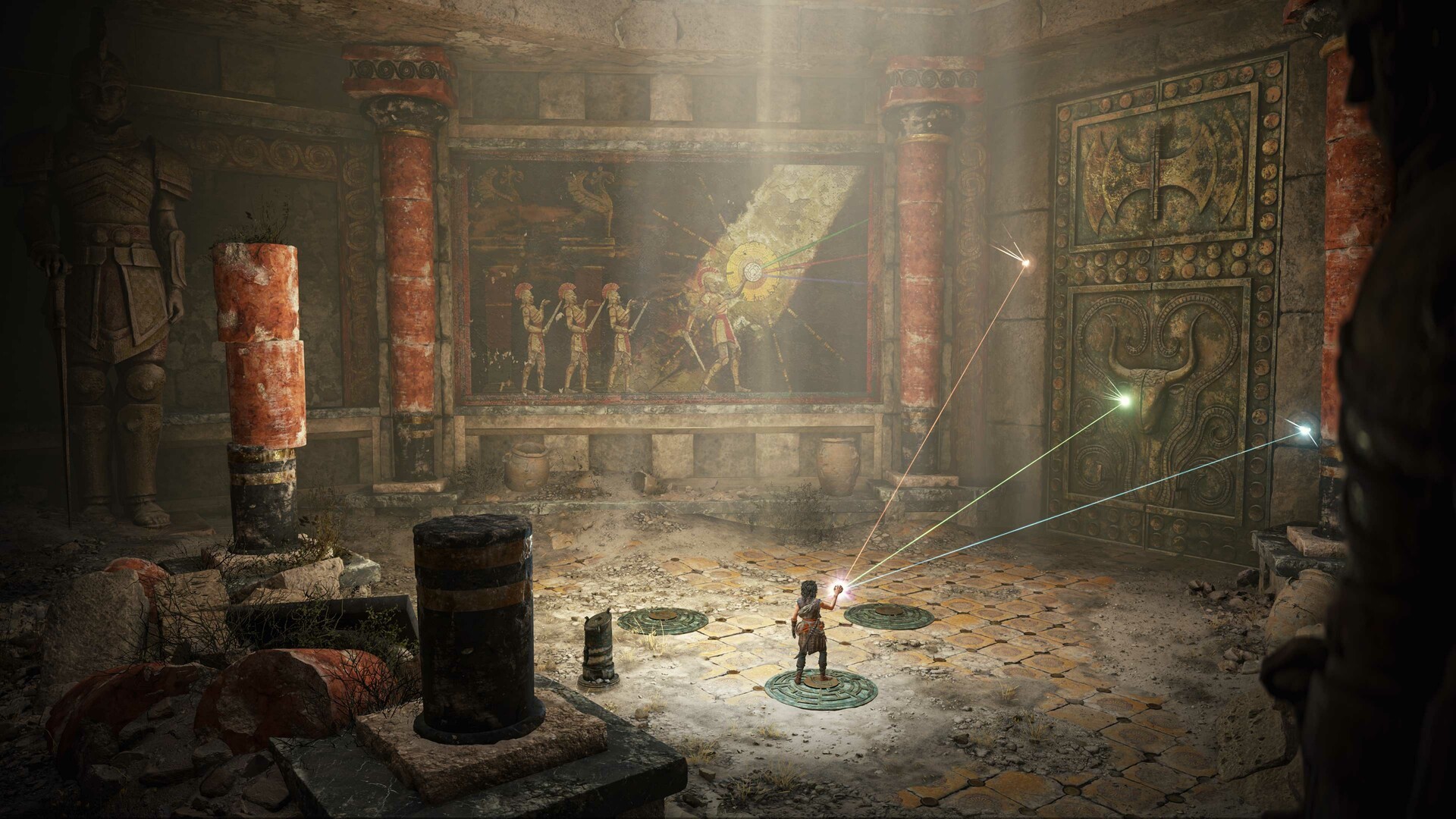 Tritt geleitet vom Wissen in deinem Notizbuch in die Fußstapfen deiner Crew, um eine enorm detaillierte Welt zu erkunden, ihre Geheimnisse zu enthüllen und dich tödlichen Prüfungen zu stellen. Benutze eine gestohlene minoische Sphäre, um ausgeklügelte Rätsel zu lösen, indem du das Licht manipulierst – eine Kraft, die Daedalus ins Zentrum der Insel integriert hat.