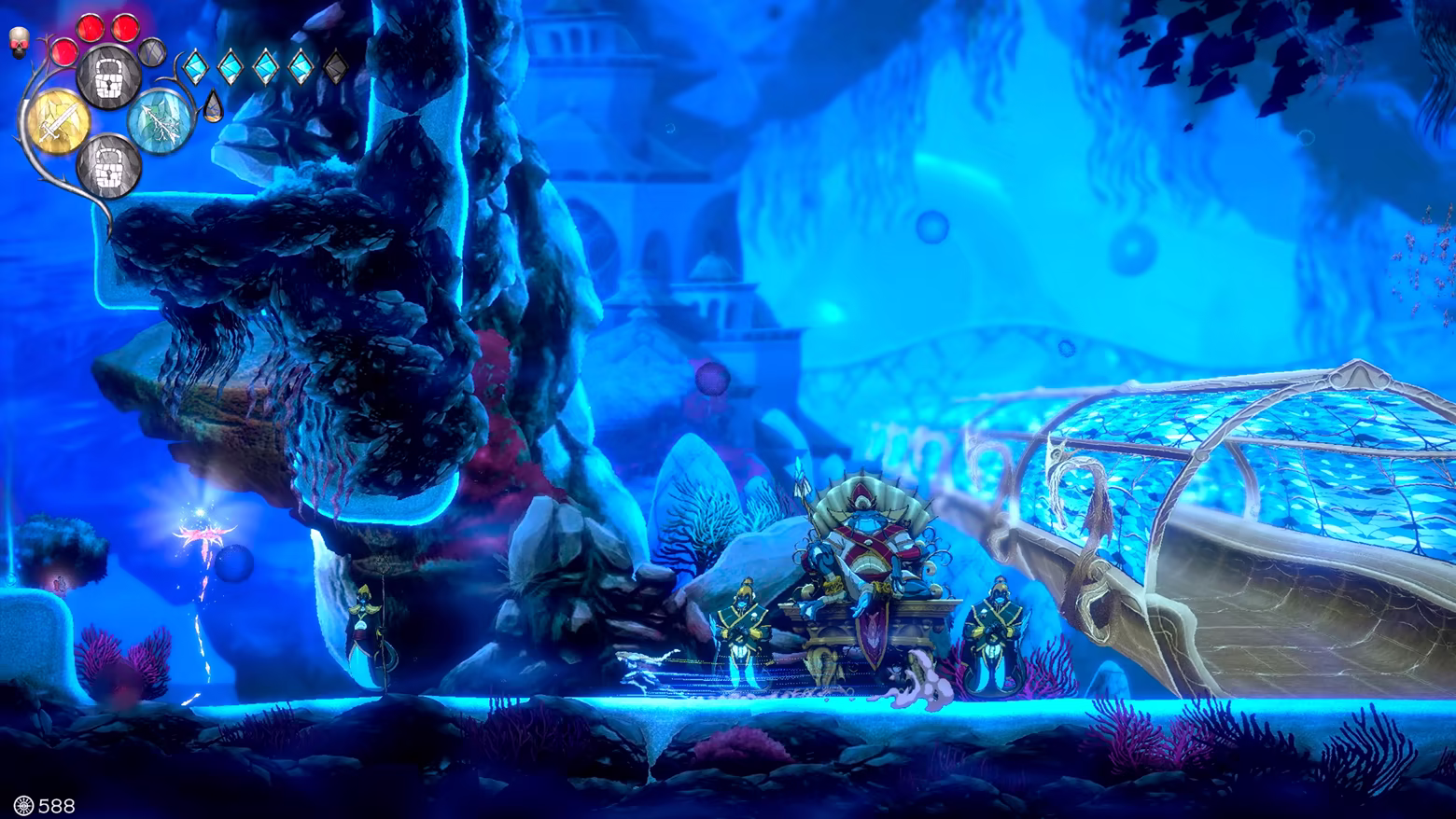 Metroidvania in seiner reinsten Form: Du wirst neue, miteinander verbundene Gebiete auf einer riesigen Karte voller Geheimnisse, Nebenmissionen und zu besiegender Gefahren erkunden. Als Königin des Lichts musst du die Mysterien eines Landes entdecken, das noch nie zuvor in der Reihe zu sehen war, und Verbündete sammeln, um den drohenden Zusammenbruch von Raum und Zeit aufzuhalten. Die Vielfalt der Umgebungen ist enorm, ebenso wie eine künstlerische Leitung, die jedem Bereich eine einzigartige Persönlichkeit verleiht.