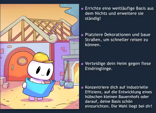 Fang ganz klein an und verbessere deine Basis, deine Fähigkeiten, deine Ausrüstung, dein Netzwerk aus Freunden (und Feinden!) und gestalte deine Zukunft nach deinen eigenen Vorstellungen!