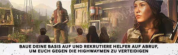 Schließe dich anderen Überlebenden an und führe den Kampf gegen eine neue, gefährliche Bedrohung an: die Highwaymen und der Führung der Zwillinge, die sich die letzten verbleibenden Ressourcen sichern wollen.