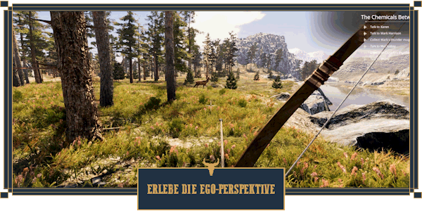 Tauche ein in die visuell eindrucksvolle Welt von Wild West Dynasty. Die Erforschung des Wilden Westens, der Hausbau mitsamt Dekoration, die Jagd und all die anderen Aktivitäten kannst du mit der optionalen Ego-Perspektive noch intensiver erleben.