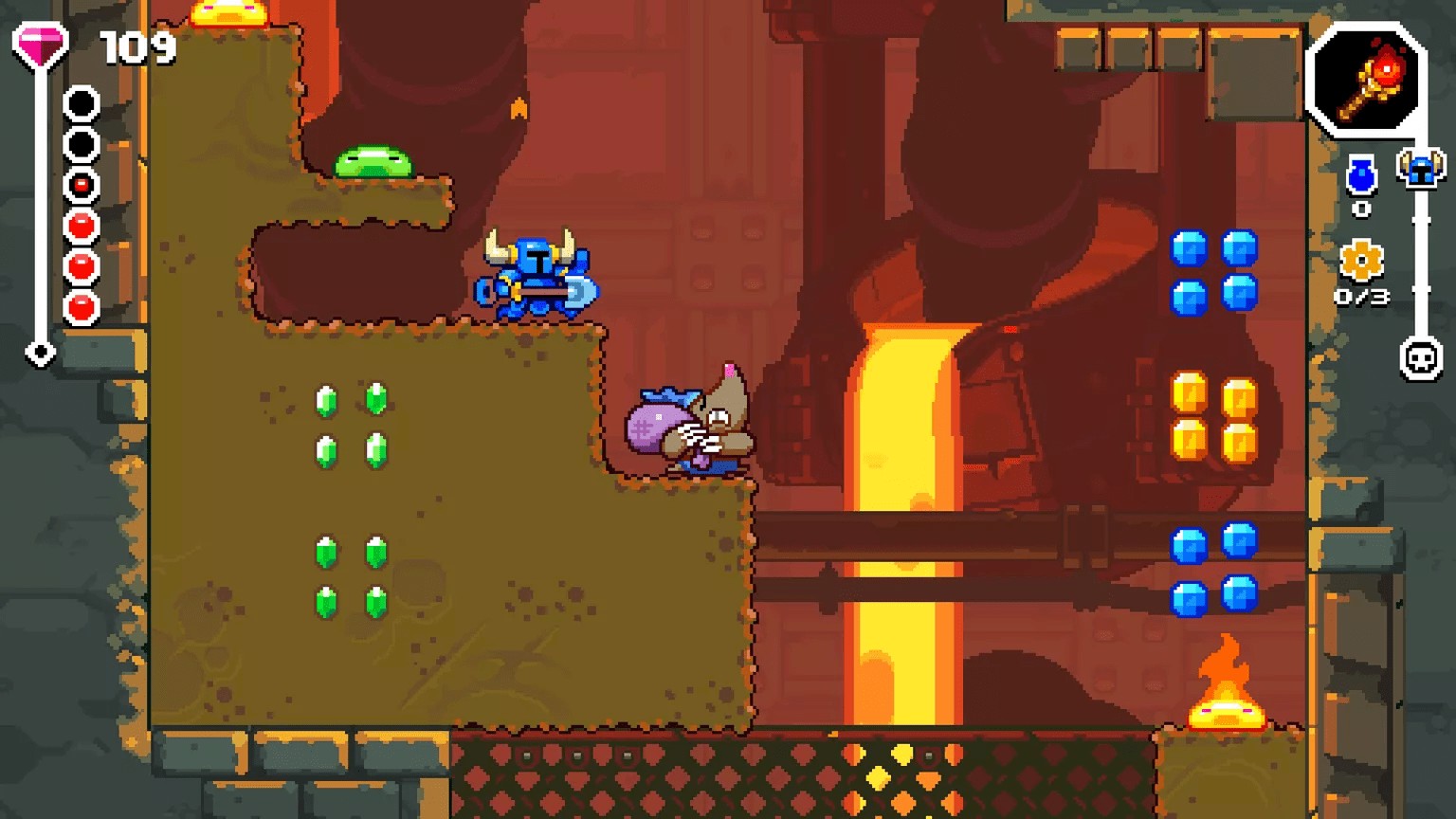 Als Drill Knight und seine ruchlosen Spießgesellen das friedliche Lager von Shovel Knight sprengen und seine Beute stehlen, packt er seine getreue Schaufelklinge und schaufelt ihnen hinterher!