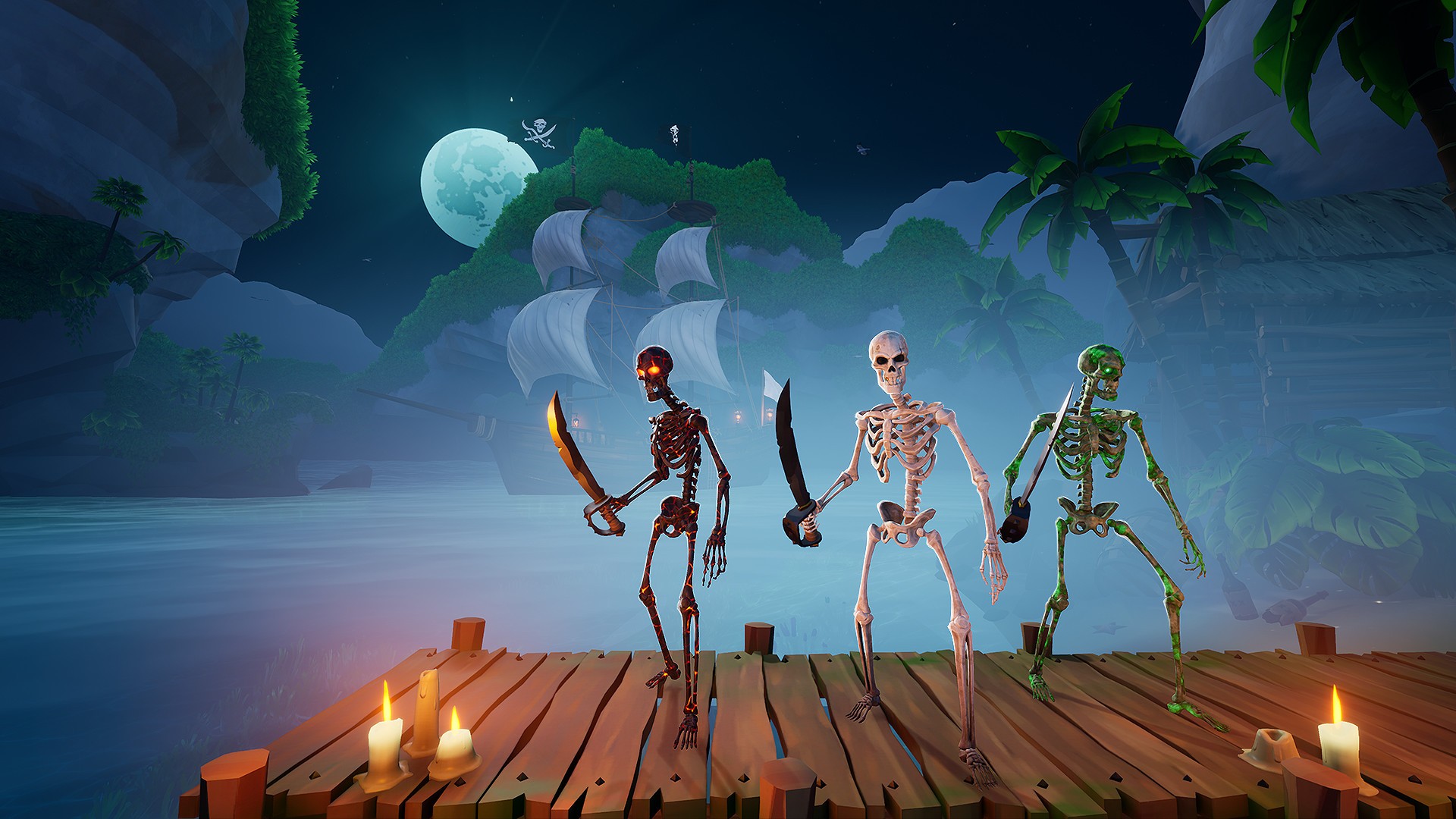 Hope you believe in ghost stories scallywag! This DLC contains 3 unique styles of full-body skeleton skins in both male and female variations. The skeletons are all combinable with almost all existing cosmetic items! And that's not all. This DLC also contains unique ghastly voice lines so you can both look and sound like an undead spooky pirate!