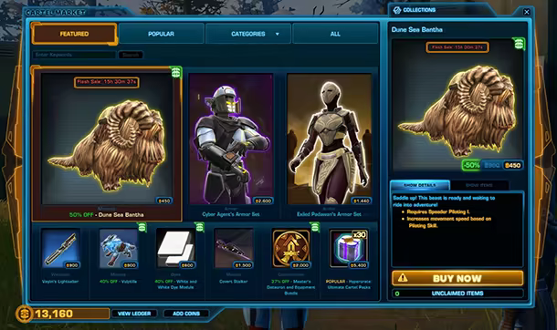 STAR WARS™: The Old Republic™ is the only massively multiplayer online game with a Free-to-Play option that puts you at the center of your own story-driven STAR WARS™ saga. Play as a Jedi, a Sith, a Bounty Hunter, or as one of many other iconic STAR WARS roles and explore the galaxy far, far away over three thousand years before the classic films. With 6 narrative expansions, become the hero of your own STAR WARS adventure as you choose your path down the Light or Dark side of the Force™...