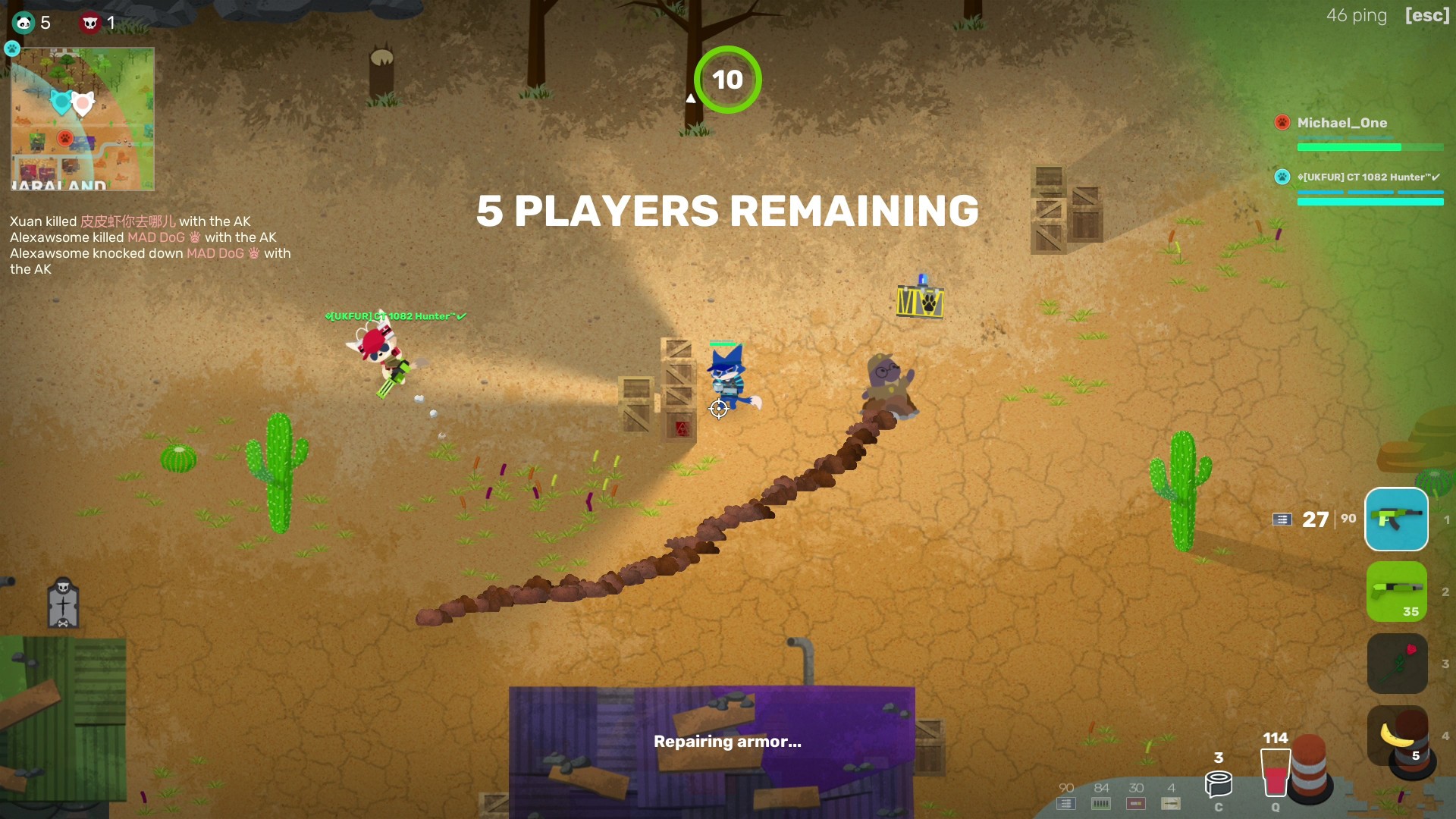 It’s a fight for furvival! Super Animal Royale is a 64-player, frenetic, top-down 2D battle royale where murderous animals fight tooth, claw, and machine gun across an abandoned safari park. Collect and customize your favorite critters and weapons, then put them to work in solo matches or team up as a squad of up to four players!