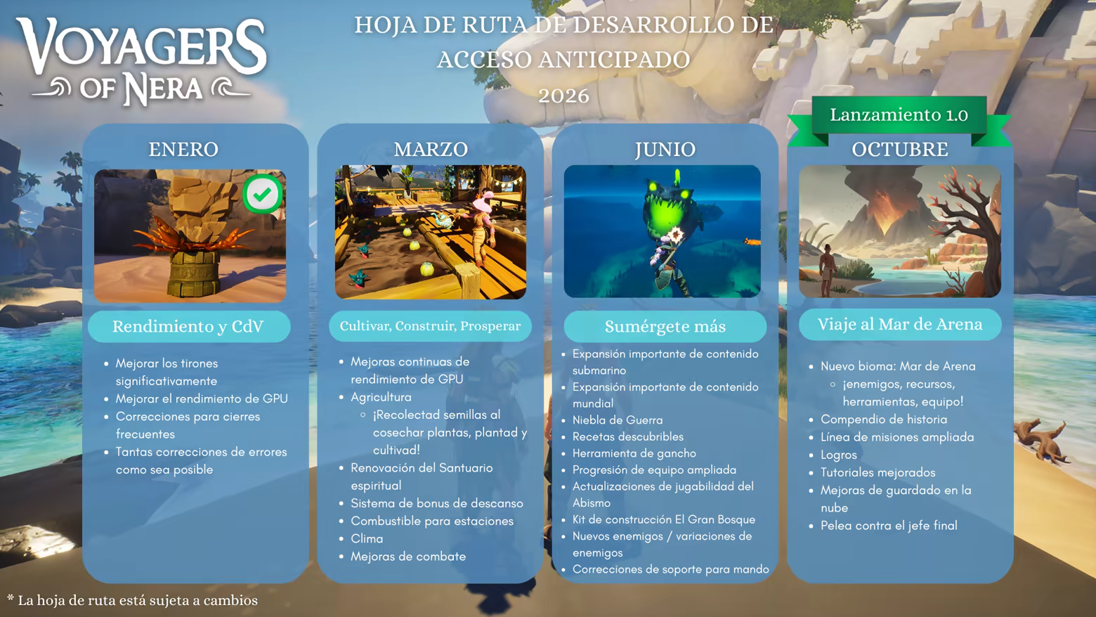 Voyagers of Nera es un juego cooperativo de supervivencia y construcción para hasta 10 jugadores, ambientado en un vasto océano repleto de ruinas antiguas y biomas diversos.Nera es un universo marino lleno de belleza, magia y peligro. Eres un eco, descendiente de los antiguos protectores de este mundo que se extinguieron hace siglos. Tu deber es explorar el entorno, derrotar a las monstruosas criaturas abisales y despertar a los espíritus antes de que se desvanezcan para siempre.HOJA DE RUTA ...