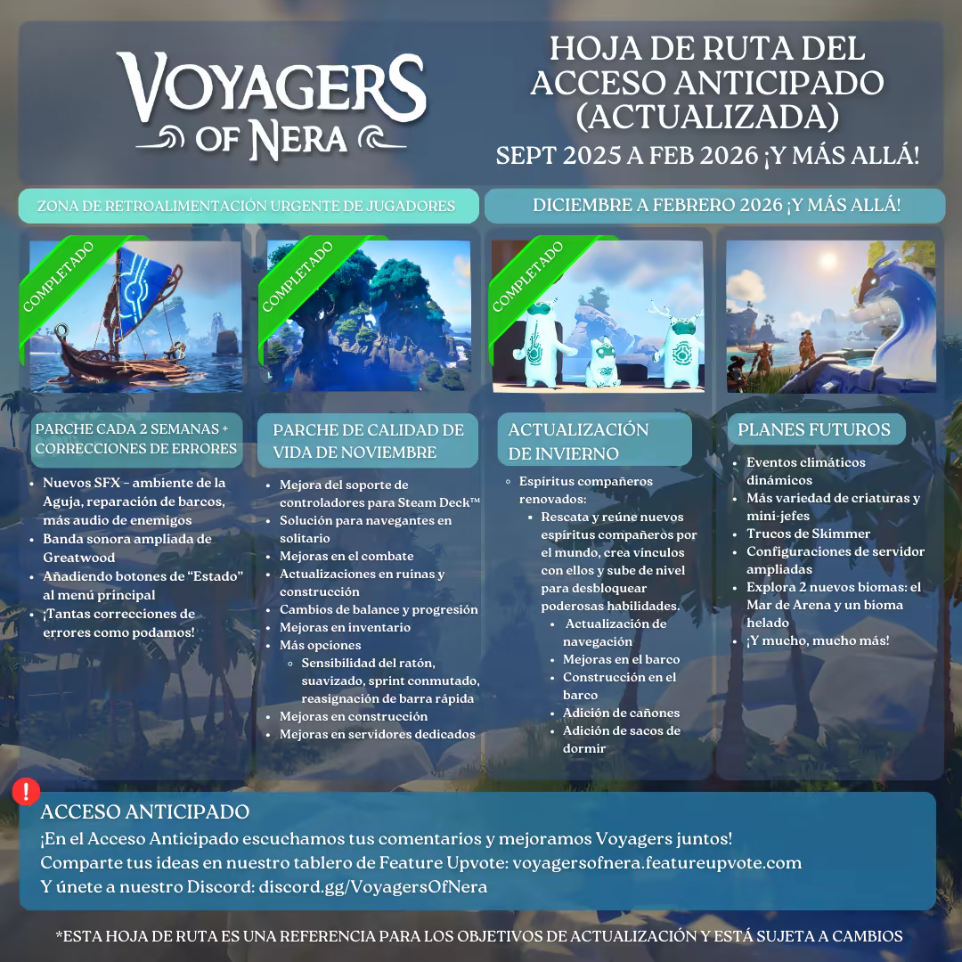 Sabemos que los buenos juegos deben contar con la opinión de los jugadores, por eso llevamos realizando pruebas cada dos semanas desde mediados de 2025. El acceso anticipado nos permite recibir comentarios de muchos más jugadores, lo que nos ayuda a mejorar y pulir el juego. Nos encantaría conocer tu opinión a través de la encuesta del juego, en Steam o en nuestro Discord. ¡Gracias a todos los que habéis jugado por apoyarnos y ayudarnos a mejorarlo!