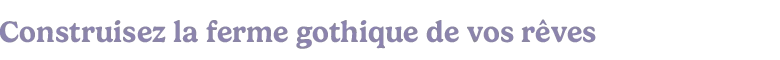 Créez votre chaleureuse propriété gothique en transformant une ferme abandonnée en un sanctuaire idéal. Obtenez de nouveaux outils et développez votre propriété pour cultiver des plantes encore plus magiques et élever des animaux enchanteurs.
