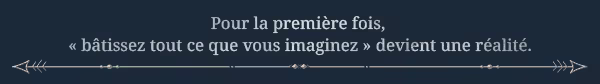 Lancez le jeu, construisez une DreamForge et tapez ce que vous imaginez. Une IA de pointe transformera votre description en une pièce de construction personnalisée utilisable en temps réel. Entièrement répliqué, pour que chacun puisse admirer votre créativité.