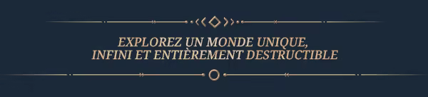 Dans un monde infini, la mobilité est reine. Grimpez sur n'importe quelle surface, plongez à n'importe quelle profondeur, envoler-vous vers les cieux et capturez des créatures amicales pour parcourir des terrains fantastiques. Pas de façades, pas de « hors zone » : juste vous, une liberté totale et des possibilités infinies.