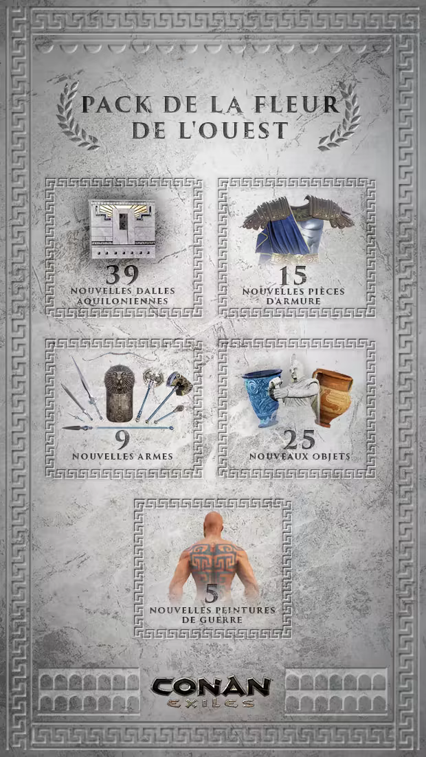 Ce nouveau contenu vous permet de construire des maisons et des villages exclusifs grâce à un ensemble complet de dalles aquiloniennes. Bâtissez des structures recouvertes de marbre lisse pour donner une toute nouvelle allure à votre base.