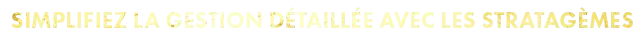 Les stratagèmes sont des plans complets et des séries d'actions qui permettent aux joueurs de gérer de grandes quantités de petites actions simplement et commodément. il s'agit d'un système de réponse rapide aux crises ou autres situations imprévisibles. Il est même possible d'élaborer des stratagèmes de manière procédurale.
