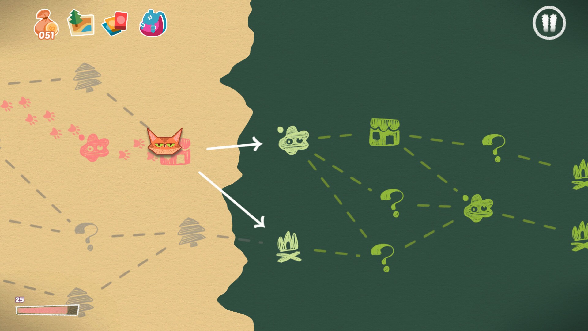 Scegli le carte con abilità speciali man mano che avanzi nei livelli per affrontare i boss finali che ti aspettano alla fine della foresta. Decidi cosa portare in ogni avventura per mantenere le tue scorte fresche e scegli tra due personaggi, ognuno con carte uniche.