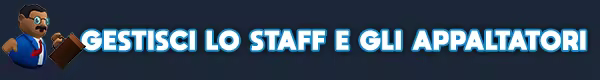Ottimizza la quantità di staff necessario per gestire l'afflusso di ospiti. Ogni potenziale dipendente possiede un diverso set di attributi che può influire in maniera positiva o negativa sulle sue prestazioni. Migliorane il livello per avere una forza lavoro più efficiente! Gestisci la catena della logistica appaltando i sistemi di stoccaggio e smaltimento rifiuti per avere le dispense piene e un hotel pulito.