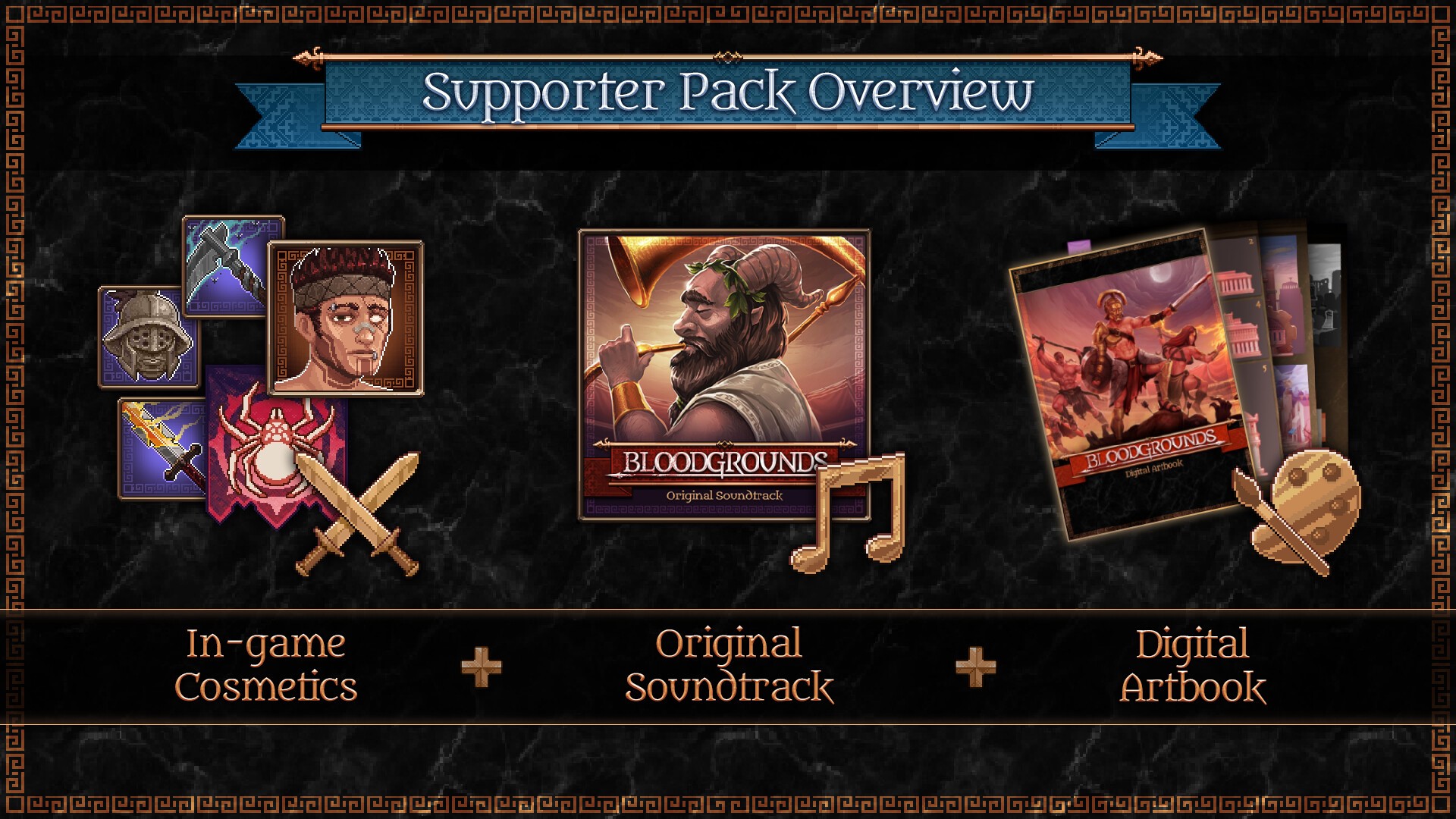 Il Supporter Pack contiene una collezione di DLC e bonus per chi desidera fare uno sforzo aggiuntivo per sostenere gli sviluppatori di Bloodgrounds: