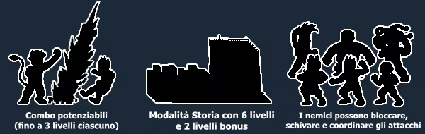 Il gioco offre attacchi speciali ad area, combo, potenti incantesimi e undici personaggi giocabili (sette sbloccabili).