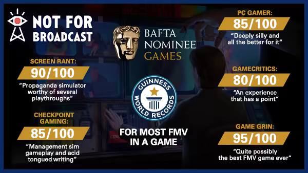 Take control of the National Nightly News. With the nation's eyes fixed on your choices, it’s up to you to decide what gets broadcast. Choose the shots, censor any “troublesome” content, and steer the narrative as your country tumbles into totalitarianism. No pressure, rig...