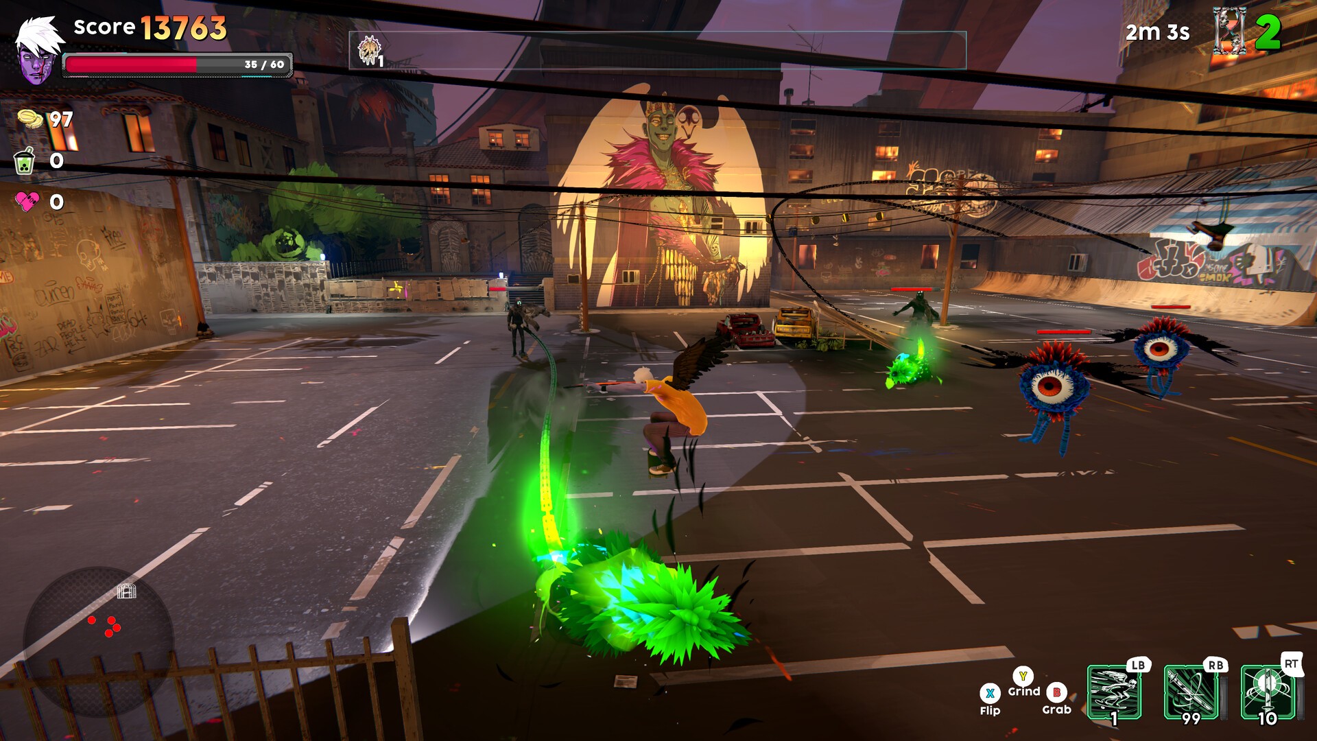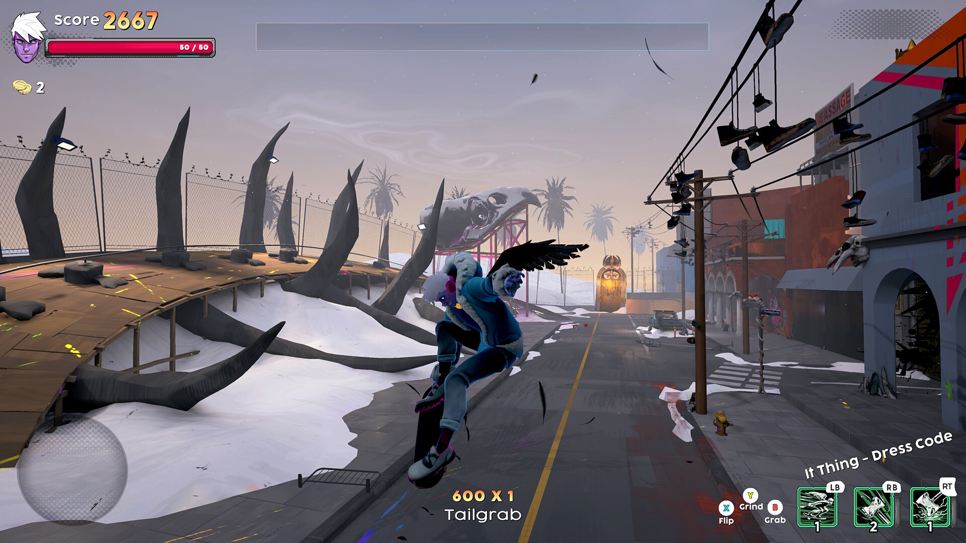Helskate is a skateboarding action roguelite. Grind, perform tricks, and chain combos to power up your attacks and slay the monsters of Vertheim. Combine and upgrade different weapons and gear to suit your playstyle, as you fight, die and come back to this hellish labyrinth over and over again!Skate Your Way Through Vertheim Traverse Vertheim as you grind, wall ride and manual your way through this hellscape with classic arcade-style skating.