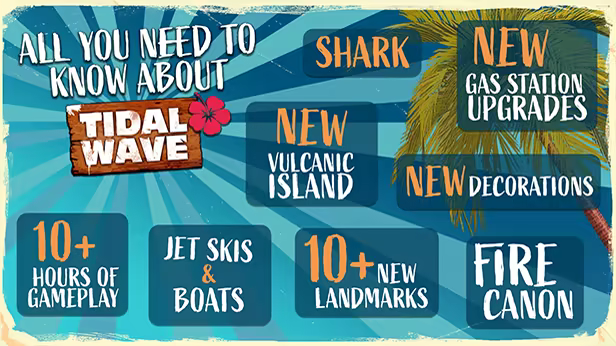 With the Tidal Wave DLC you can set up a new gas station on a remote paradise island that is governed by its own unique rules, offers new game mechanics, stunning surroundings and god appeasement.
