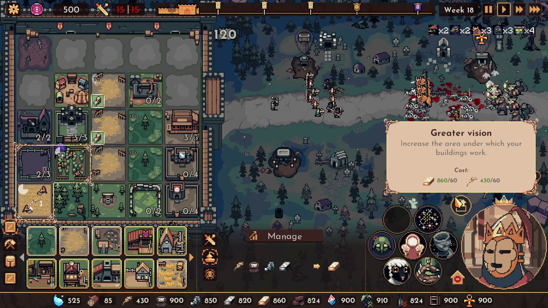 Ach, moje wspaniałe królestwo! Kraina, w której chłopi harują, górnicy kopią, a rycerze trenują... ale tylko wtedy, gdy na nich patrzę! Moje spojrzenie jest prawem – postęp dokonuje się tam, gdzie sięgam wzrokiem, ale co się dzieje, gdy tylko się odwrócę? Próżniactwo! Chaos! Muszę wybierać mądrze: czy skupić się na polach, by pozyskać żywność, kopalniach, by zdobyć bogactwo, czy też koszarach, aby móc się bronić? Mając odpowiednie zasoby, mogę nawet rozciągn�...