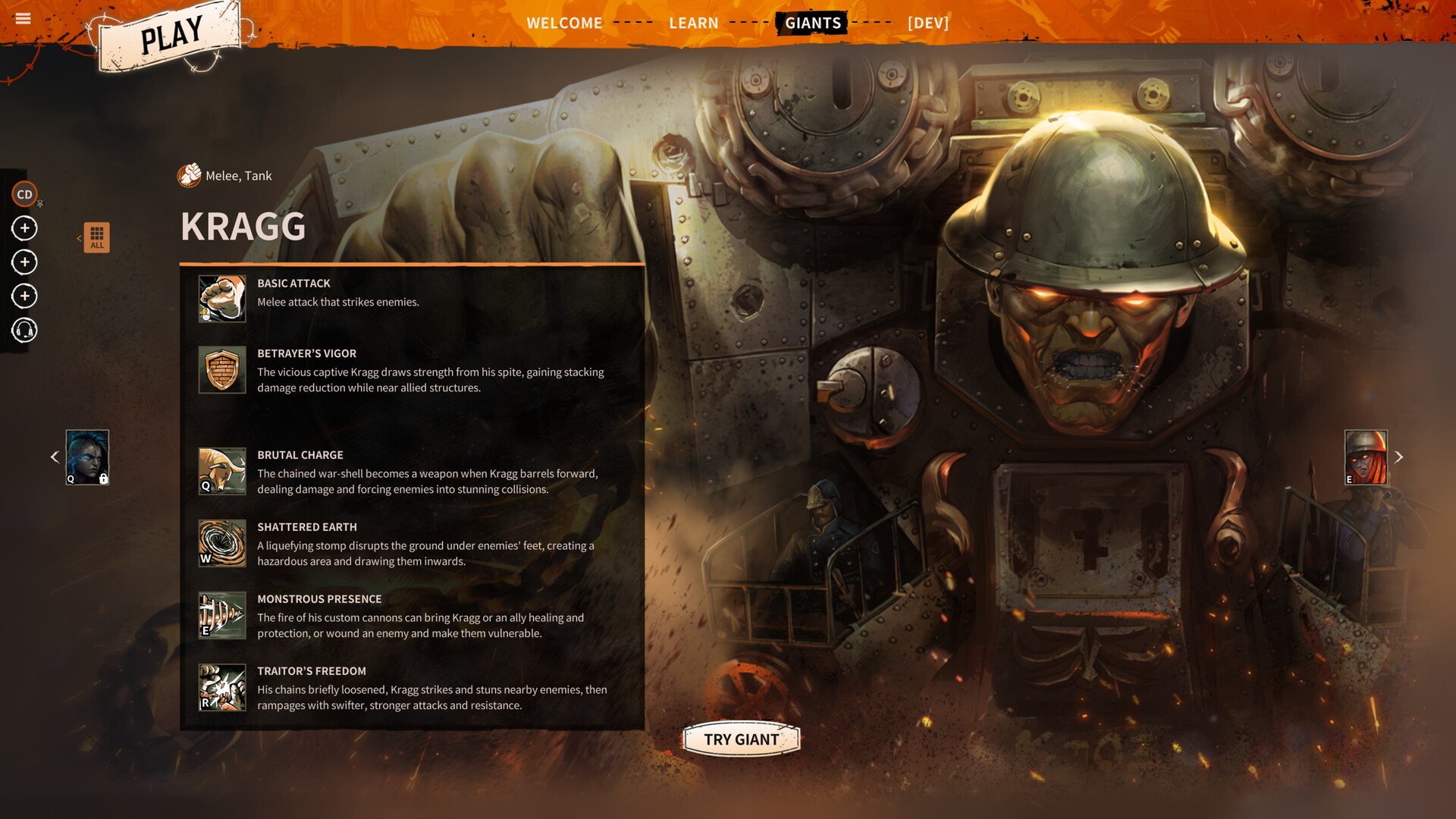 Dominate the battlefield as a towering war commander in strategic 4v4 combat. From crowd controllers to burst and sustained damage specialists, harness your Giant's unique abilities to secure victory for your team.