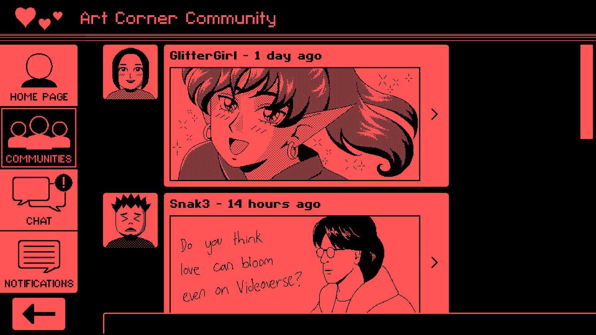 Relive the days of past social gaming networks in VIDEOVERSE – A decision-based narrative adventure focusing on character development, friendship and love, from the developer behind One Night Stand.