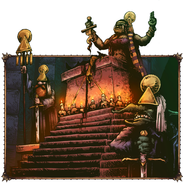 Masz wielu wrogów: świątobliwych paladynów, inne kulty, a nawet okazjonalny rozwścieczony tłum. Powitaj ich stalą, zaklęciami i armią ożywionych niewolników. Każda walka będzie sprawdzianem dla twojego kultu przeciwko siłom, które nie chcą dopuścić do odbudowy świątyni. Każdy bohater stanowi nowy zasób do zebrania.
