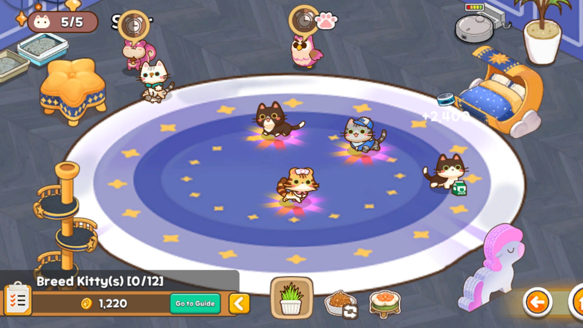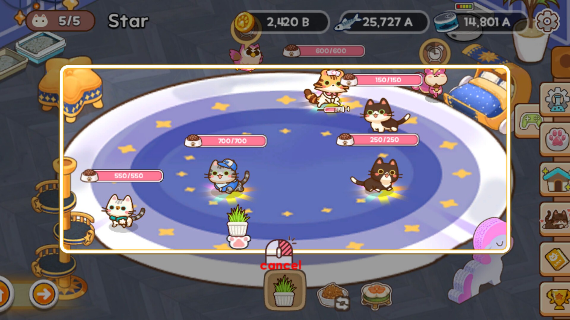 These cats are nothing like the ones you’ve seen before! Not only are they fluffy and adorable, needing your care, they also turn into brave little warriors, using yarn balls and Meow Punch to earn coins and fish treats for you! Enjoy watching your cats automatically gather coins and treats for you! All the coins you collect can be used to evolve your cats or decorate their little home.