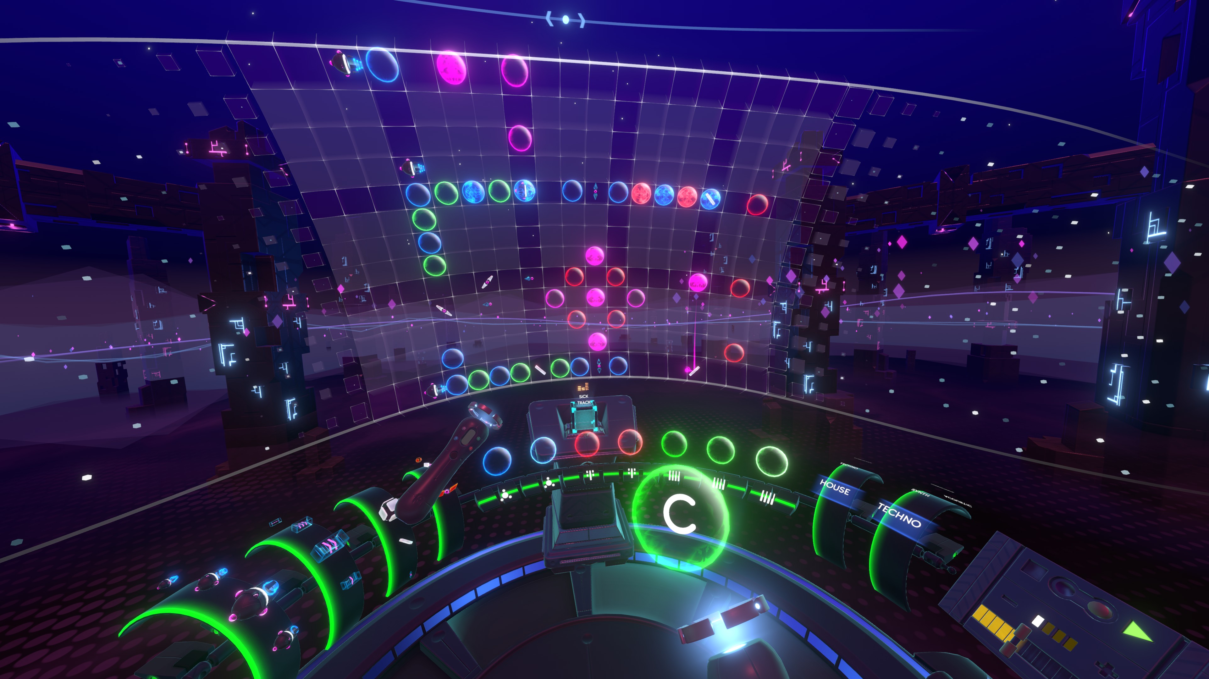 Put on your PlayStation VR headset and enter a virtual space full of musical potential. Exclusive to PS VR, Track Lab lets you easily create new beats by moving musical building blocks around in their virtual environment.