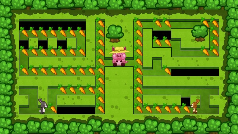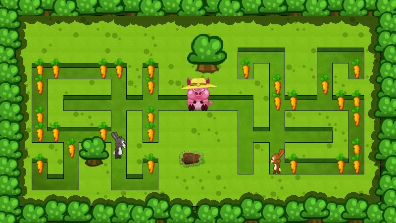 Cuties – They are 50 colourful logical levels where you have to lead two rabbits in love through a number of obstacles. There are chasms, traps, breakable bridges and angry plants in green forests, hot deserts and even in the North Pole. The main villain is a bad pig who is on the way of the loving rabbits. Fortunately, it’s quite easy to lull its vigilance if you collect a certain number of carrots.