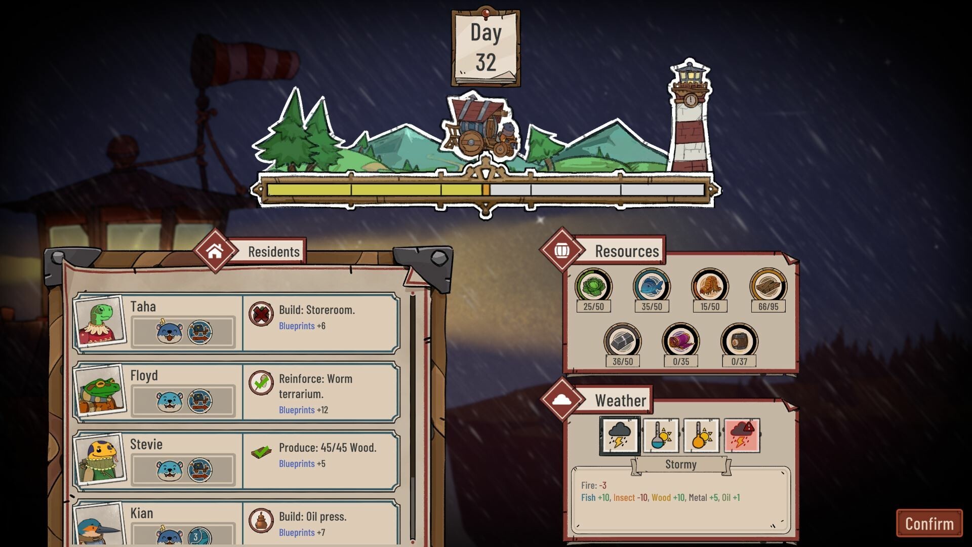 Latarnik regularnie przyjmuje do osady antropomorficznych przybyszów. Każda osoba jest wyjątkowa, ma inne cechy i specyficzną wiedzę, ale też prośby, które musisz spełnić. Bierz te informacje pod uwagę, by zbudować gościnną, zrównoważoną społeczność.