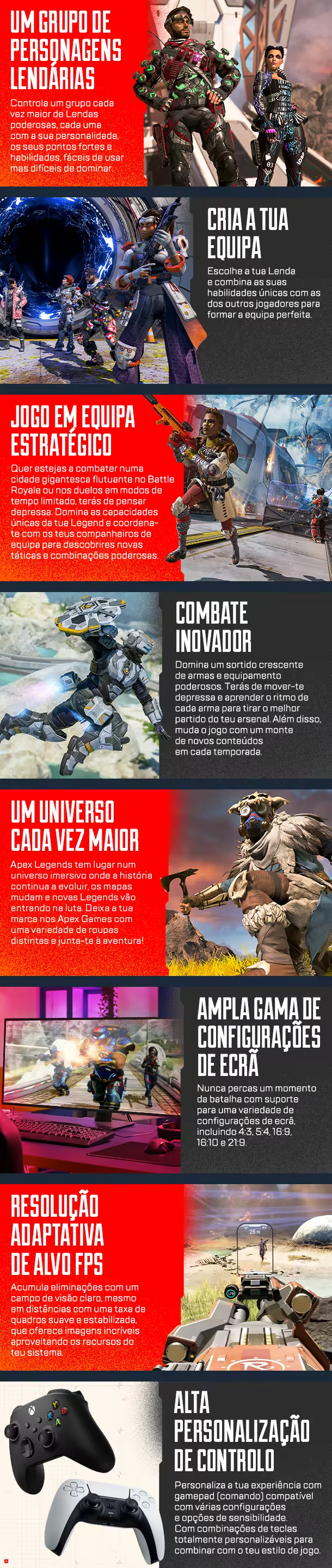 Domina um elenco crescente de Lendas diversas, joga em equipa com tática e inovações arrojadas que aumentam a fasquia da experiência Battle Royale —tudo dentro de um mundo agreste onde vale tudo. Esta é a próxima evolução dos jogos de tiros com heróis.