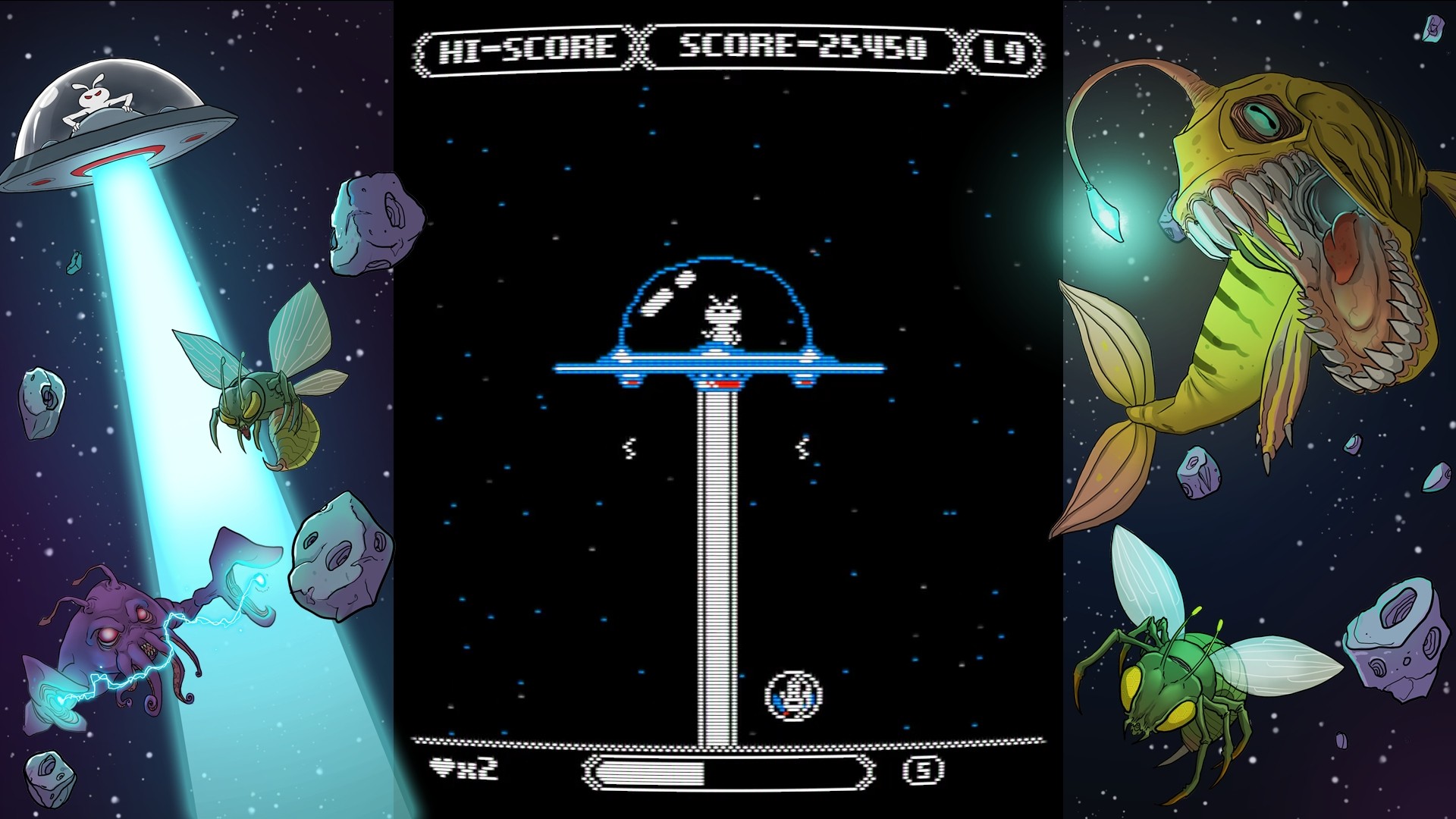 Zeroptian Invasion is a classic game of pixelated graphics and amazing chiptune melodies inspired by classics such as Space Invaders, Galaga or Centipede.