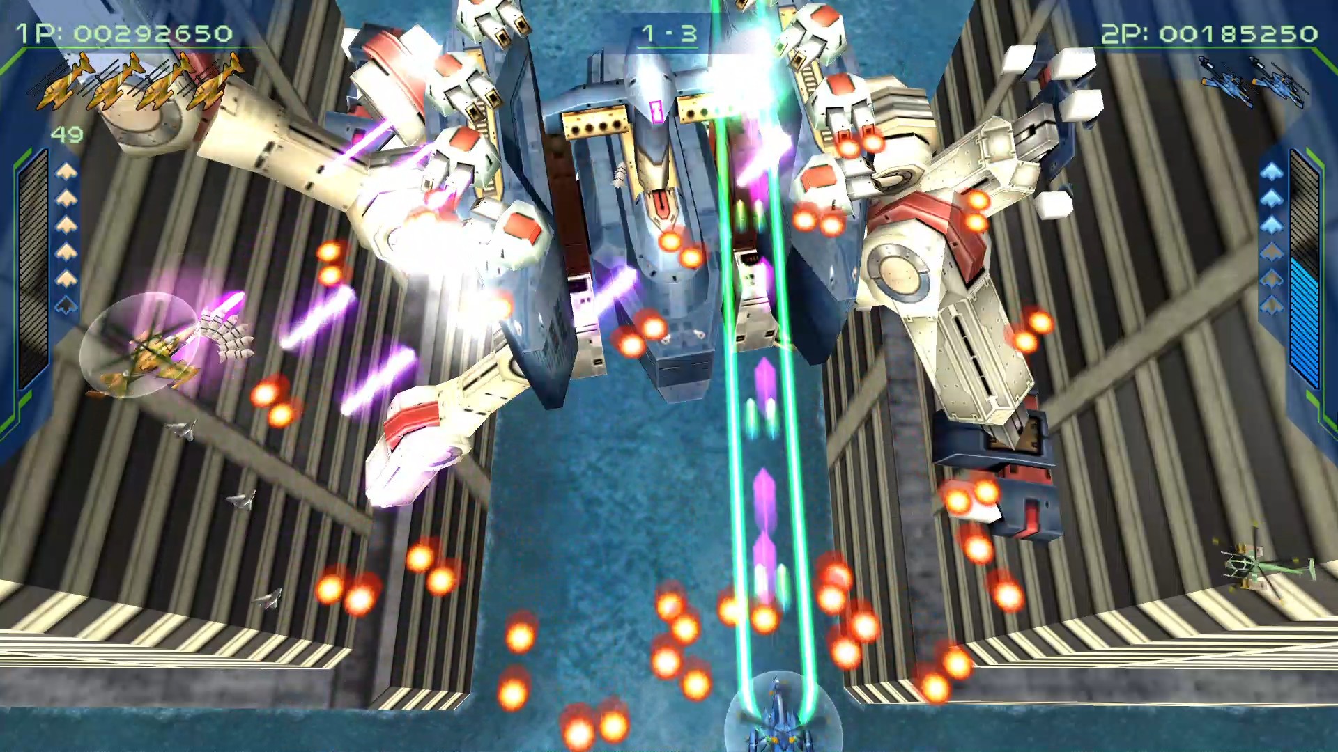 Go through the 360 degree siege! Zero Gunner 2 is a top-down shooter game that first appeared in arcades in 2001. The planes are three attack helicopters. They can use automatic normal shot, sub-shot and Drone Attack. The Drone Attack consumes energy and deals heavy damage to the enemy. This shooter has an important system of Turn Marker. The Turn Marker become the axis of the plane's change of direction when installed. Master the Turn Marker system and prepare for attacks from al...